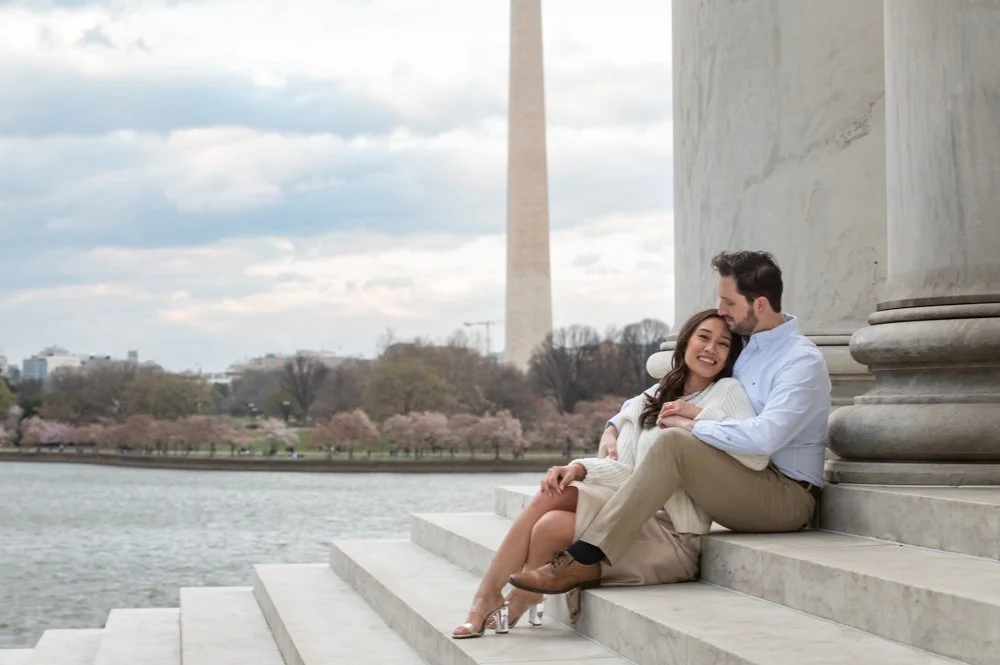 This beautiful couple braved 15-20 mph wind gusts in 45 degree weather for their engagement session in DC.
